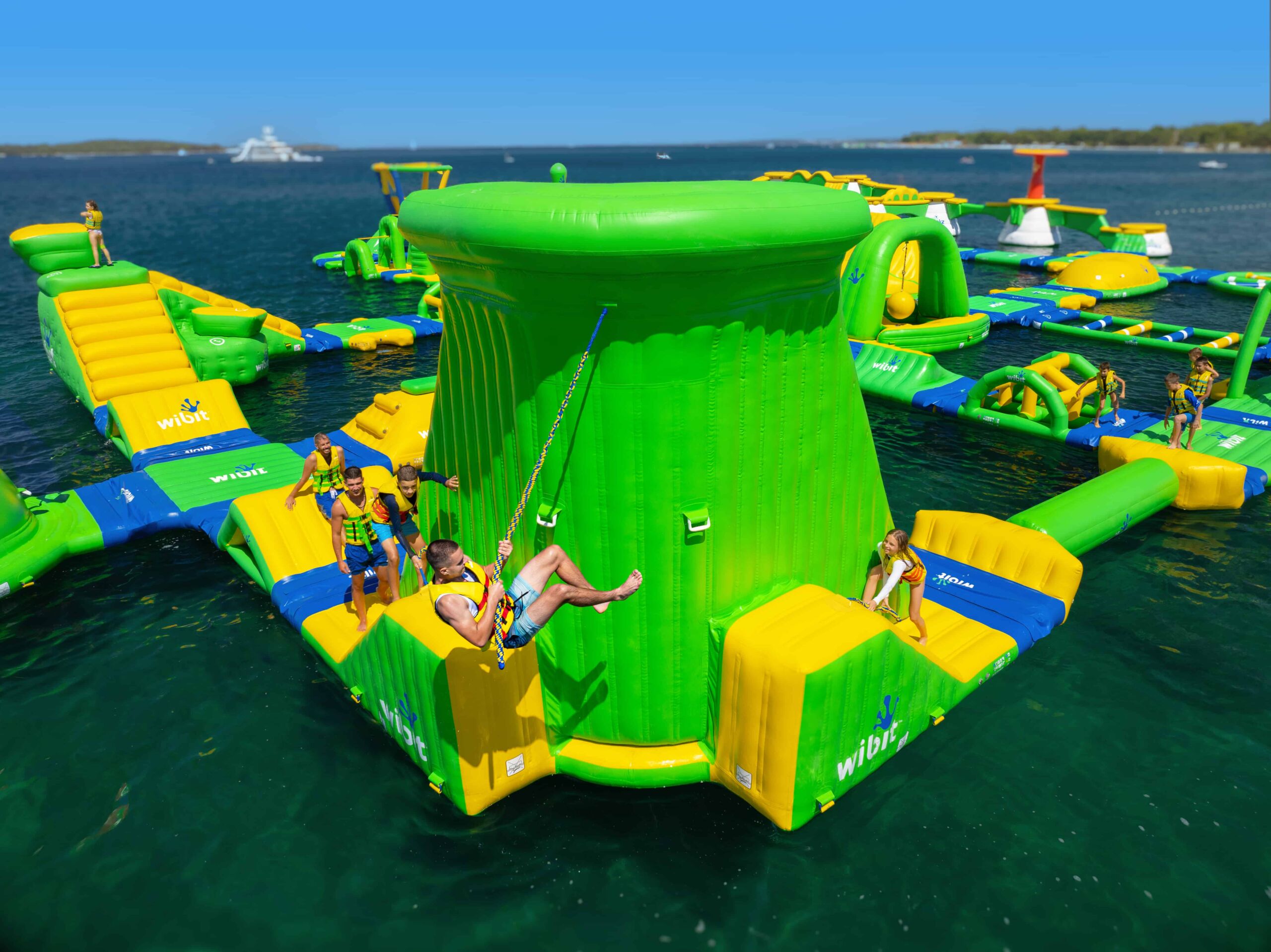 Wibit CornerSwing to emocjonująca atrakcja wodna, która łączy elementy huśtawki i wspinaczki, oferując niepowtarzalne doświadczenia dla poszukiwaczy przygód.